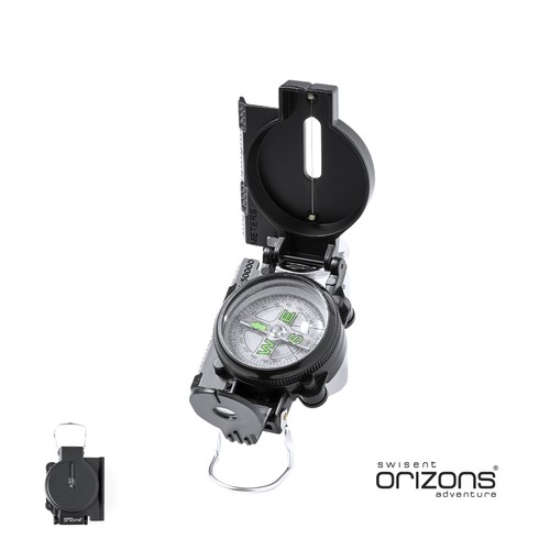 Boussole Orizons de haute précision en aluminium résistant avec clip de fixation. Présentée dans une boîte élégante avec le logo de la marque.
