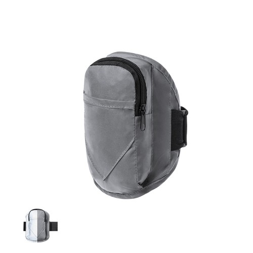 Bracelet de sport en polyester 210T, fabriqué à l’aide d’un tissu d’une grande capacité à réfléchir intensément la lumière, grâce à des millions de pigments réfléchissants et basé sur le principe de la rétroréflexion de la lumière, une propriété de la visibilité nocturne qui consiste en la réfraction de la lumière vers la source d’origine de celle-ci. Poche principale avec fermeture à glissière et poche avant avec fermeture velcro. Avec sangle réglable élastique et imperméable.