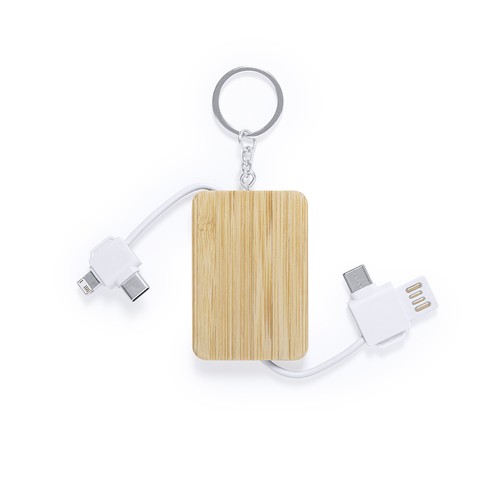 Chargeur porte-clés de la ligne nature au design compact. Fabriqué en bambou issu de coupes naturelles. Type C (entrée et sortie) et double connexion micro USB-Lightning, avec système USB réversible pour une connexion facile à l'alimentation. Généreuse surface de marquage et présenté dans un sac individuel, auto-fermant et éco-conçu.
