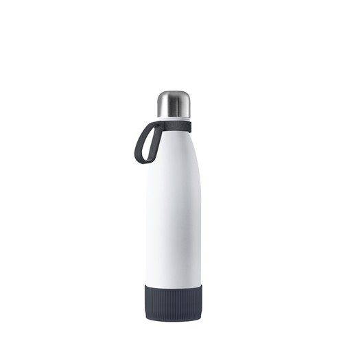 Que ce soit pour les boissons chaudes ou fraîches notre bouteille en acier inoxydable double-paroi convainc par son design tendance et fonctionnel. Grâce aux deux parois avec vide, vos boissons restent chaudes ou fraîches longtemps. La bouteille peut être commandée avec un revêtement poudre élégant noir mat, blanc, ou de couleur naturelle argentée. Une contenance de 500 ml est à votre disposition. Mettez votre logo en scène avec style et en toute simplicité sur la bouteille tendance.