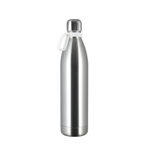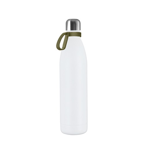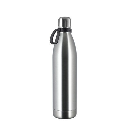 La bouteille isotherme à double paroi d'une contenance de 750 ml est la plus grande alternative à notre modèle original. Elle conserve vos boissons au chaud, ou au froid, et impressionne par la taille imposante du marquage. Elle est disponible avec un revêtement en poudre blanc, noir ou en acier inoxydable de couleur argent mat avec un revêtement anti-traces de doigts. Le couvercle à vis empêche les fuites.