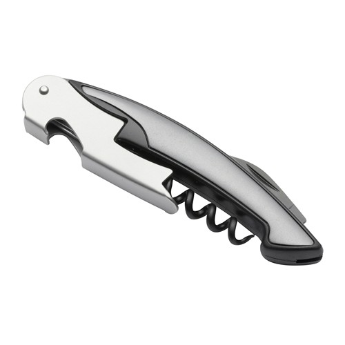 Ouvrez les bouteilles de vin comme un pro ! Ce couteau sommelier haut de gamme en aluminium et acier inoxydable dispose d’un décapsuleur, d’un couteau (découpeur), d’une tige (tire-bouchon) et d’un levier. La tige en acier inoxydable convient pour les bouchons naturels et synthétiques. La lampe du découpeur est aiguisée en dents de scie et évite que l’opercule ne se déchire au moment de le couper. Ce couteau sommelier se replie pour prendre le moins de place possible. Personnalisable avec une impression 1c ou une gravure laser.