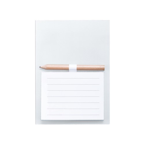Bloc notes magnétique en carton résistant en coloris vifs et variés. Bloc de 40 feuilles lignées avec support pour mini crayon inclus.