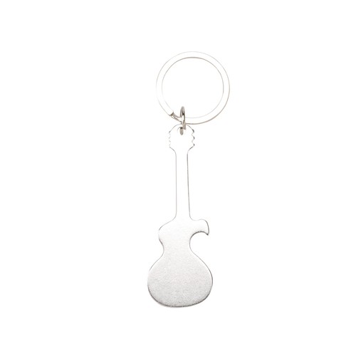 Porte-clefs décapsuleur en forme de guitare avec corps en aluminium proposé dans des couleurs variées et vives. Idéal pour le marquage laser.