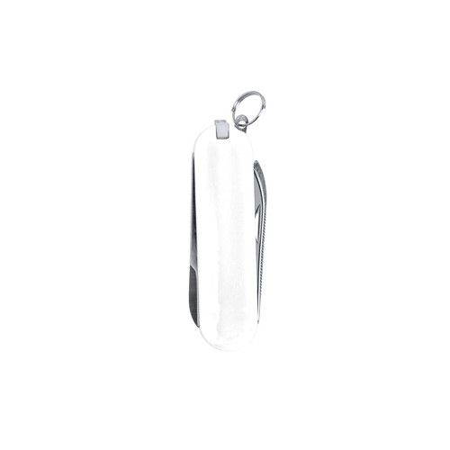 Mini canif avec 6 fonctions. Accessoires en acier inoxydable. Comprend couteaux, pince à épiler, lime, cure-dent, anneau pour porte-clés et ciseaux. Coloris variés. Présenté en boite individuelle.