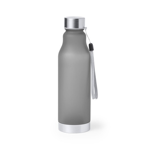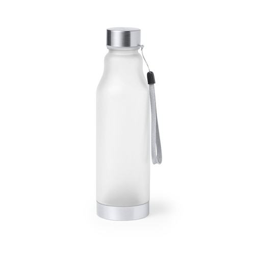Bouteille d'une capacité de 600ml. Sans BPA, avec un corps en RPET fabriqué à partir de plastique recyclé, pour promouvoir la réutilisation des déchets plastiques et contribuer à la durabilité de la planète. Bouchon à vis en acier inoxydable, avec cordon de transport et base assortis. Disponible dans une large gamme de couleurs.