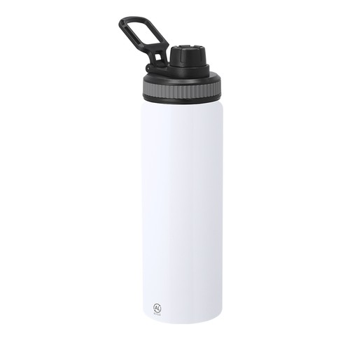 Bouteille en aluminium recyclé d'une capacité de 800 ml. Fournie avec un bouchon à vis noir avec poignée en silicone grise pour une étanchéité optimale, un distributeur et une poignée de transport réglable. Avec logo en aluminium recyclé.L'aluminium recyclé est un matériau aux possibilités de recyclage presque infinies, sans perdre ses propriétés originales et en consommant moins d'énergie dans le processus.Certification GRS (Global Recycled Standard), garantissant l'origine recyclée du matériau utilisé pour fabriquer le produit.