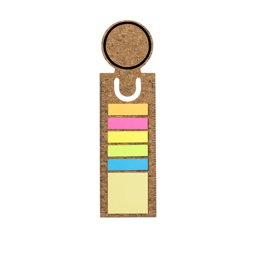 Règle marque-page en liège avec notes autocollantes. Inclut 90 notes autocollantes en plusieurs couleurs et tailles.Fabriquée avec des éléments végétaux pour promouvoir l'utilisation de matières premières naturelles et réduire les émissions polluantes.