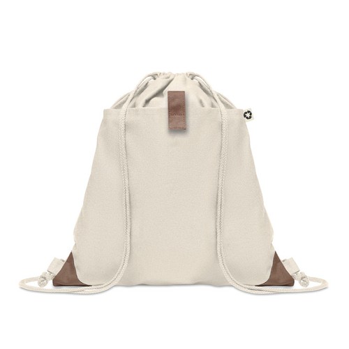 Sac à cordon en coton recyclé avec cordons naturels 50% coton et 50% coton recyclé. 220 gr/m².