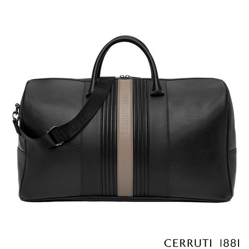 La ligne de voyage CERRUTI 1881 "Delano" joue sur les contrastes de couleurs et de textures, avec un cuir végétalien (PU) magnifiquement texturé et une bande centrale beige luxueusement embossée du logo CERRUTI 1881.