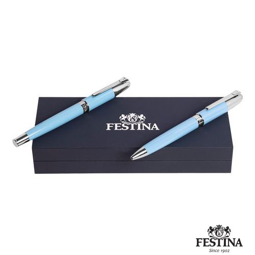 Parure Classicals Chrome Light Blue (stylo bille & stylo plume)