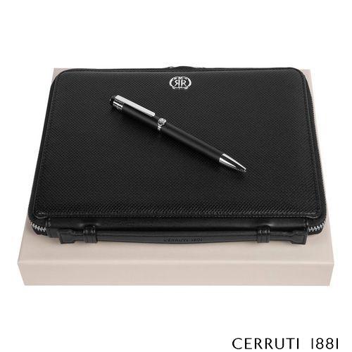 Choisissez la qualité, le style et la créativité de la ligne Regent avec cet ensemble incluant un stylo bille et un conférencier. Le stylo bille vous séduira avec ses détails raffinés tels que son anneau central et logo en relief ainsi que sa laque noire et ses accents argentés. Notre conférencier vient compléter cet ensemble avec son élégant design simili texturé de qualité et plaque de signature en chrome.