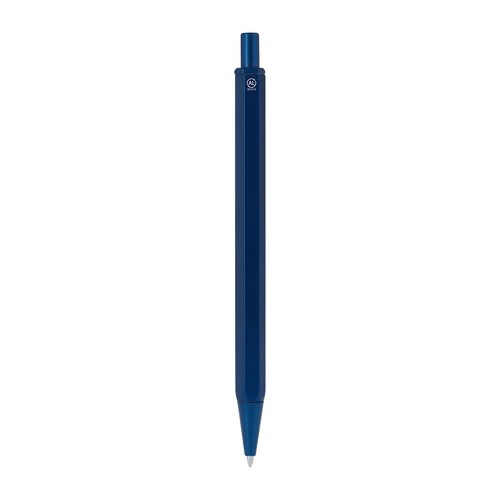 Stylo à bouton poussoir en aluminium avec prise en bambou. Encre bleue.