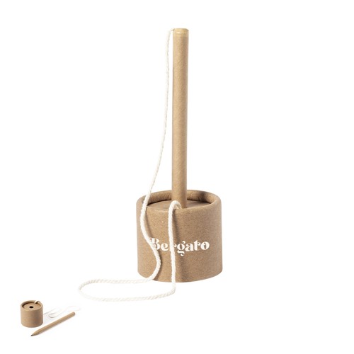 Stylo avec support de la ligne nature. Fabriqué en carton recyclé, avec corde de fixation et base avec adhésif 3M, fixation extra forte et exempte de résidus lors du décollage. À l’encre bleue.