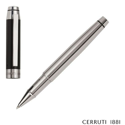 Stylo roller HERITAGE noir de CERRUTI 1881. Ce stylo de type roller est très distingué tout en restant assez sobre. Il jouit d'un poids et d'un équilibre exceptionnel. Le stylo est conçu en base laiton avec une finition chrome. Le capuchon est laqué noir.