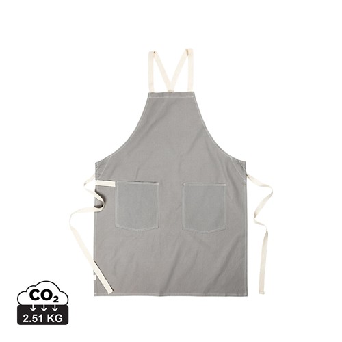 Tablier fabriqué à partir de 70% de coton recyclé certifié provenant des déchets de coton des fournisseurs. Des fibres habituellement considérées comme inutilisables ont, grâce à un processus de fabrication approprié, atteint les propriétés souhaitées. Ce tablier est extra large pour offrir une protection maximale. Deux grandes poches frontales et une boucle pour suspendre des ustensiles ou un torchon.
